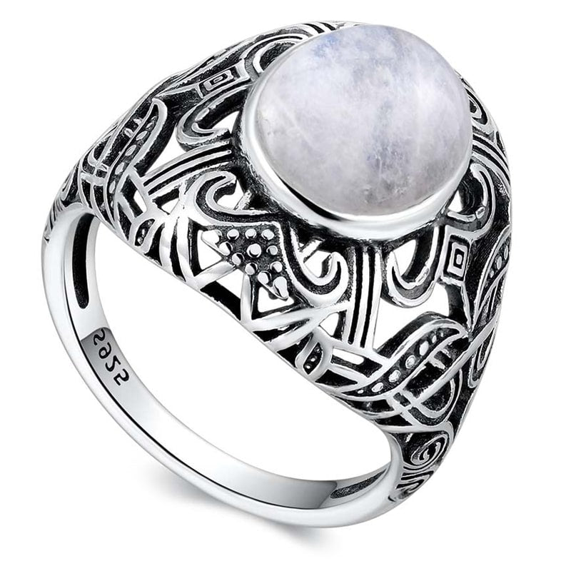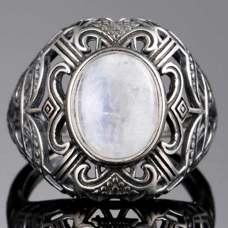 Lindo anel de pedra da lua com design vintage.