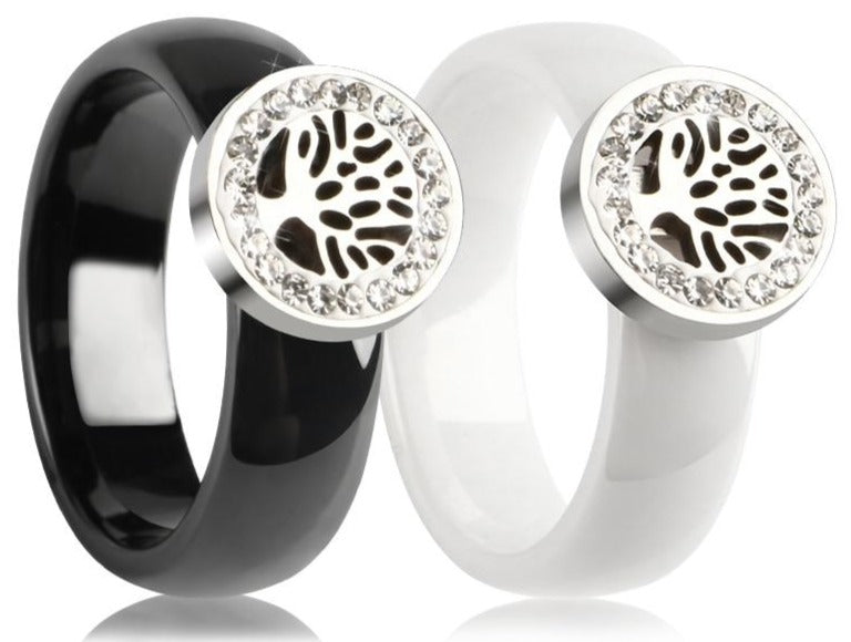 Descobre o belo anel de cerâmica com árvore da vida, decorado com prata! Esta joia original está disponível em vários tamanhos e pode ser usada em qualquer ocasião. Podes usá-la em branco ou preto, conforme a tua preferência!
