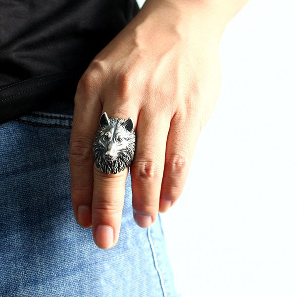 Estes itens dão um toque especial ao nosso visual. Este anel prateado com cabeça de lobo que aqui apresentamos é uma obra-prima da nossa coleção de joias, com características incomuns.