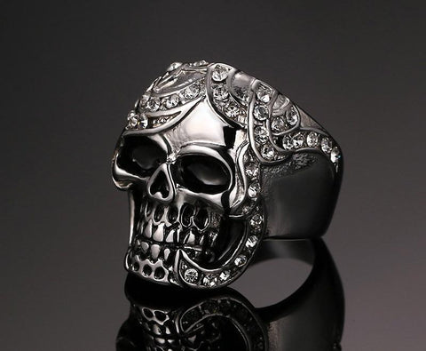 Prestígio e elegância são as marcas registadas deste anel de crânio feminino. Use esta peça marcante com um visual majestoso e percorra a sua noite com estilo e sofisticação!