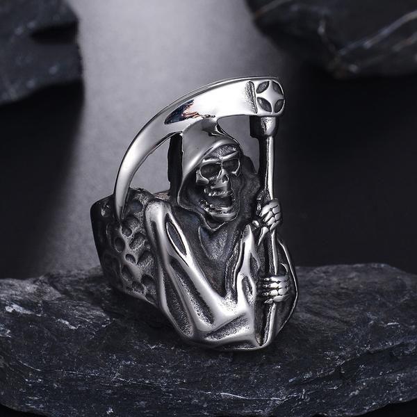 Enfrenta corajosamente a morte com este anel que apresenta a imagem da Ceifeira! "No fundo, ninguém acredita verdadeiramente na própria morte, e no subconsciente, todos estão convencidos da sua imortalidade".