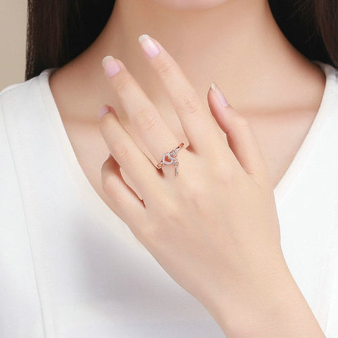 O anel de coração com chave é uma peça encantadora com um design único. O anel é adornado com um lindo pendente em forma de coração que contém uma pequena chave. Este anel acrescenta estilo e originalidade ao seu visual, seja no dia a dia ou em ocasiões especiais. O seu design singular torna esta peça única e garante que chamará a atenção sempre que entrar num espaço.