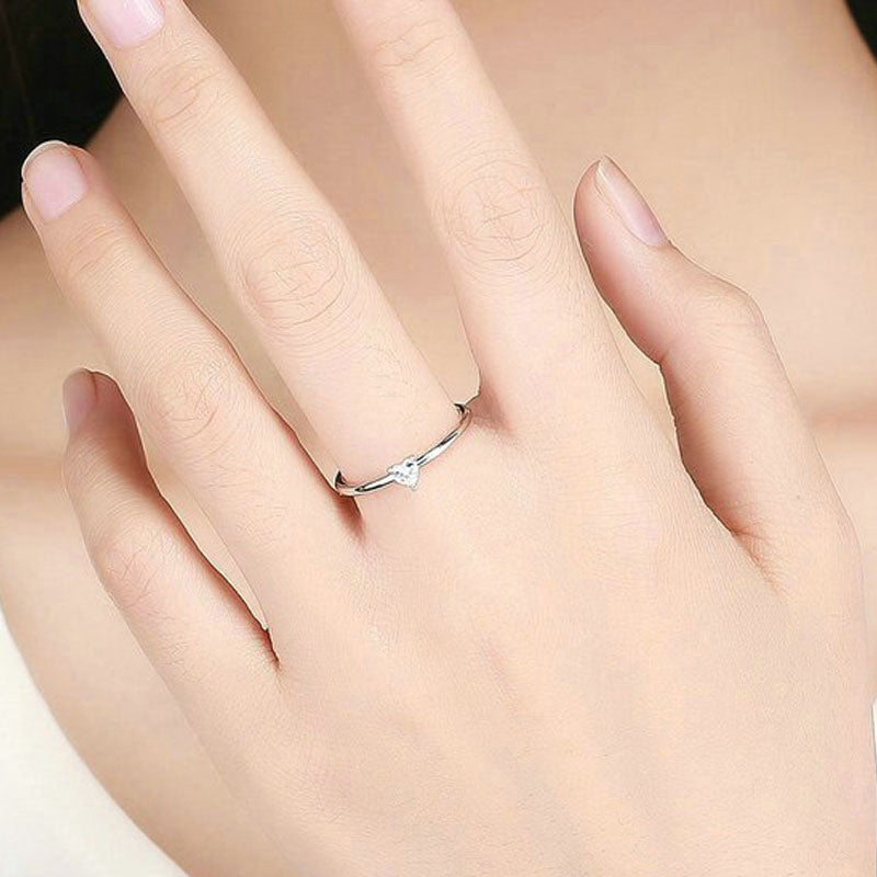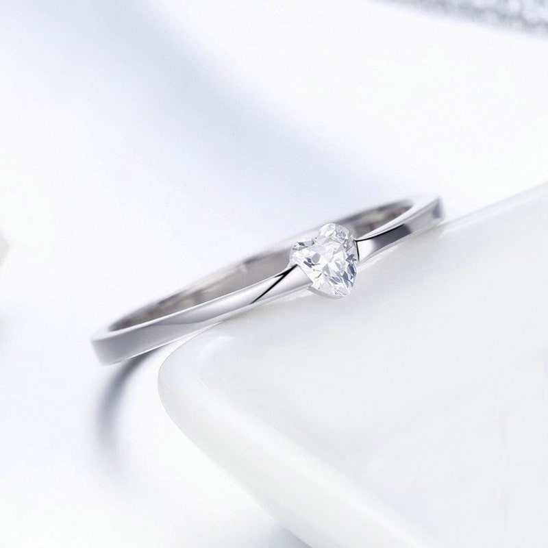 Adorável anel em forma de coração, feito de prata de alta qualidade.