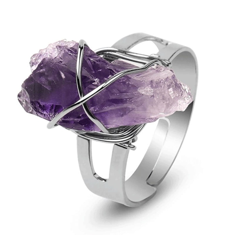 Este bonito anel de ametista bruta traz-lhe sabedoria e força.