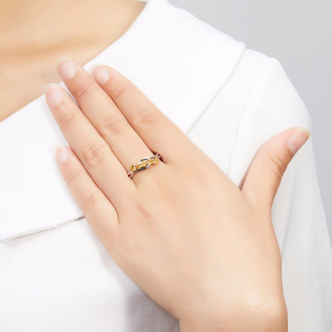 Este pequeno anel de citrino e prata traz-lhe alegria e prosperidade. O citrino acalma e equilibra o corpo e a mente. Ajuda a encontrar uma certa serenidade interior, promove a concentração, estimula a inteligência e aumenta o bom humor e a criatividade.
