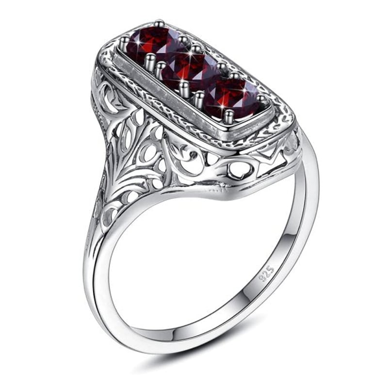 Este anel deslumbrante e discreto é a forma perfeita de adicionar um toque de luxo ao seu visual do dia a dia. O design simples e elegante é feito de prata de alta qualidade e apresenta pedras de granada belíssimas no centro. A cor vermelha intensa da pedra certamente impressiona, e a montagem delicada garante que este anel será um favorito por muitos anos.