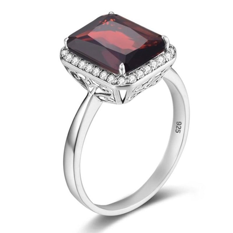Este anel de granada para mulher é simplesmente deslumbrante! É feito de prata de lei 925 e possui uma magnífica pedra de granada no centro. O design é muito simples e elegante, e a granada tem o tamanho perfeito – nem demasiado grande, nem demasiado pequena. É o anel ideal para qualquer ocasião, quer se vista de forma elegante ou casual.