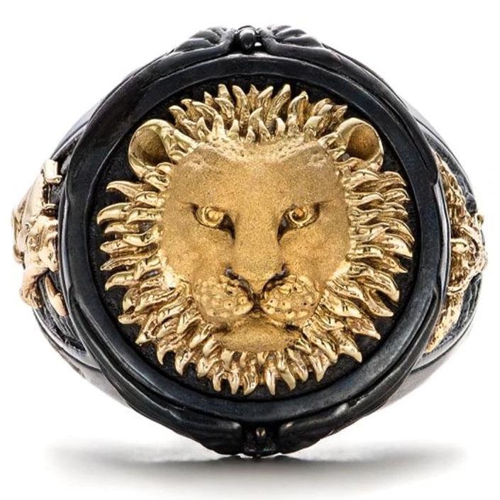 Deixa o rei da selva juntar-se a ti com este anel de leão em preto e dourado. Ele simboliza a força e a nobreza deste felino selvagem!