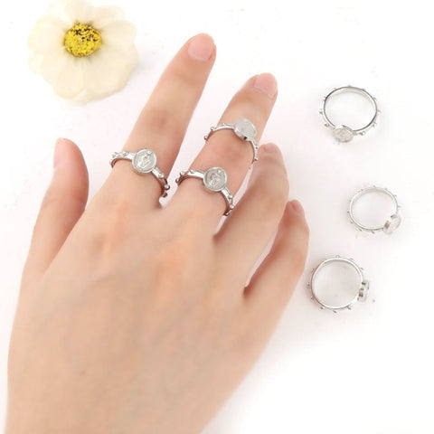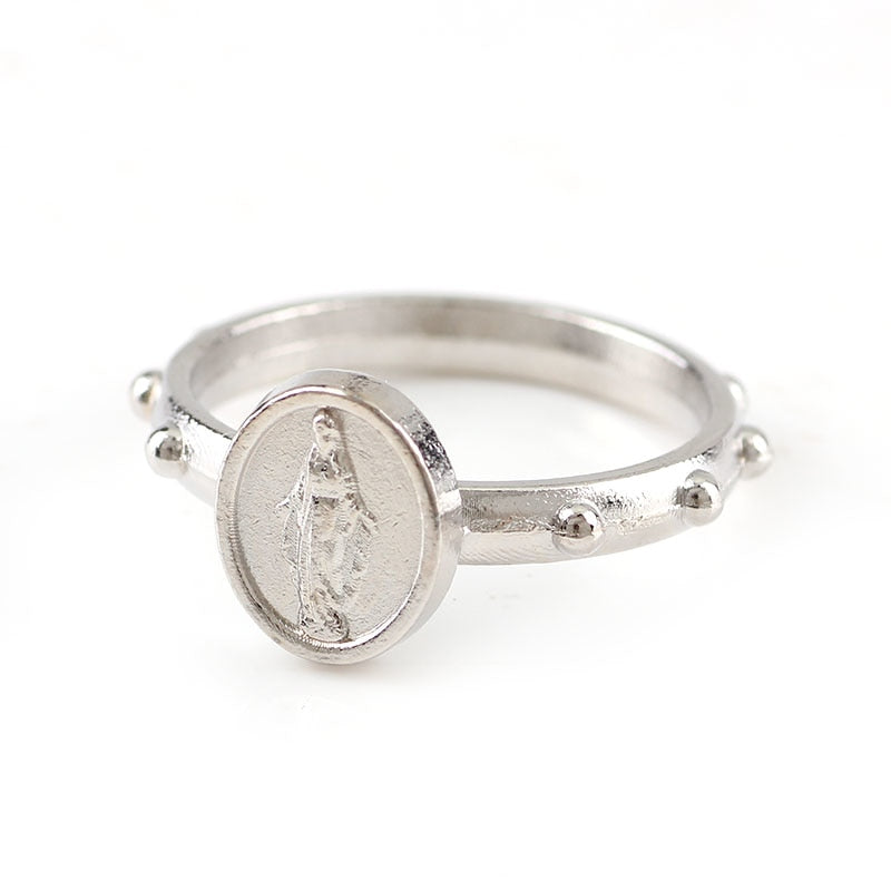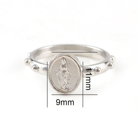 Partilha o teu amor pela Virgem Maria com este anel elegantemente desenhado em aço inoxidável. Este anel de estilo discreto e sofisticado é composto por uma faixa de alta qualidade e uma escultura de 11 x 9 mm — um acessório que certamente causará uma grande impressão! Usa no teu dedo a proteção e o amor da Mãe de Deus, Maria.