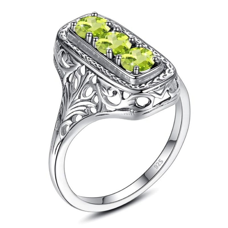 Este elegante anel com peridoto verde é o acessório perfeito. A prata 925 do anel é de alta qualidade, e a pedra de peridoto tem um bonito tom de verde que adiciona sofisticação a qualquer look. Este anel é um presente ideal para qualquer ocasião especial.