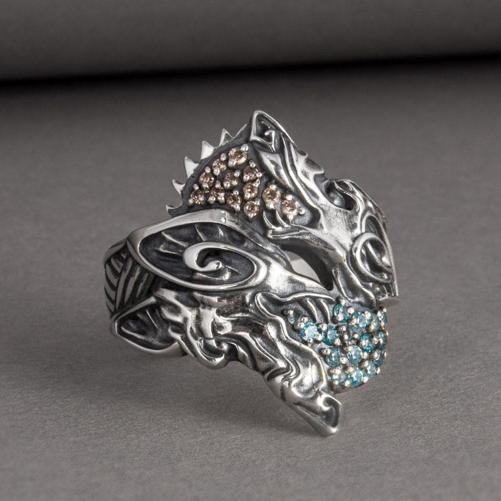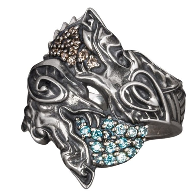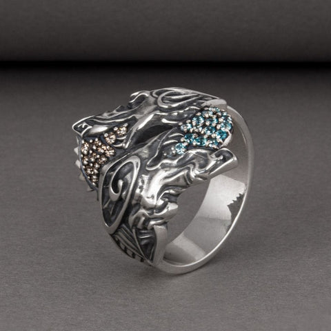 Este magnífico anel de prata representa este antigo mito escandinavo.