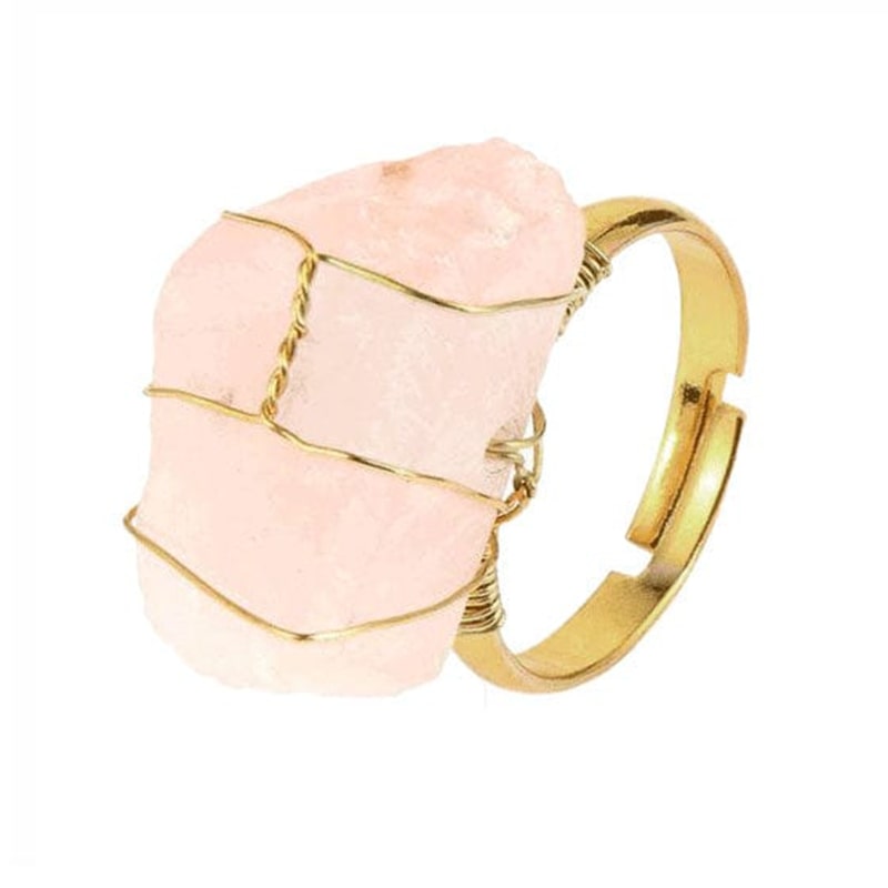 Este belo anel de quartzo rosa e dourado traz-lhe amor e paz.