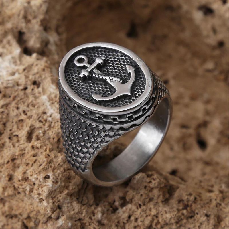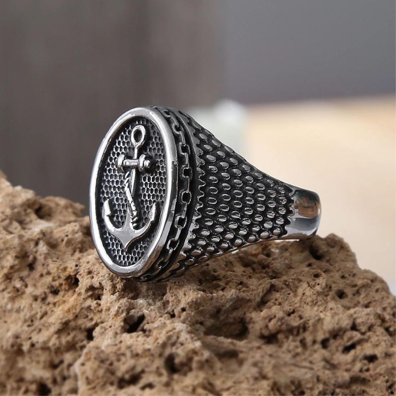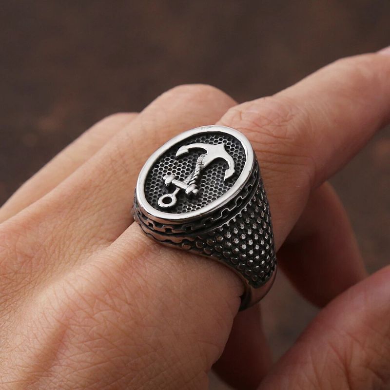 Este anel de sinete com uma âncora náutica vai ficar deslumbrante no seu dedo!