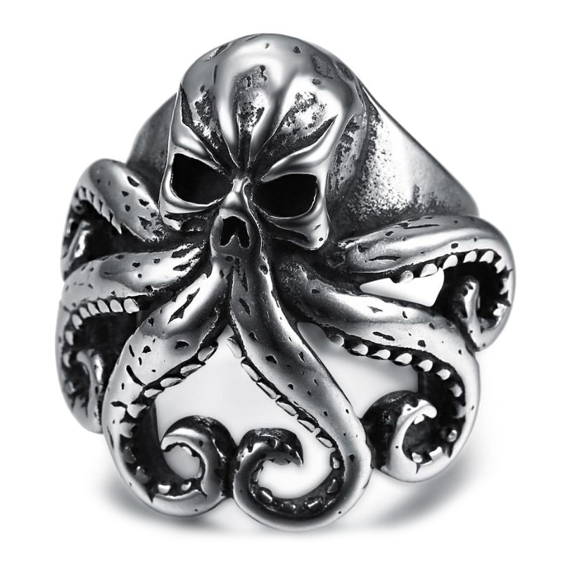 Adota um visual rebelde e gótico com este anel sinete de polvo.