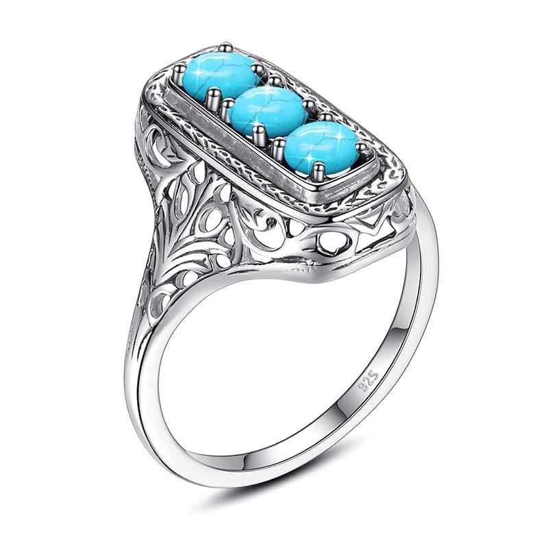 Procura um anel subtil e elegante que a faça destacar-se na multidão? Veja este deslumbrante anel adornado com uma magnífica pedra turquesa. Este anel é perfeito para qualquer mulher que deseje adicionar um toque de luxo ao seu visual. A cor azul profunda da pedra turquesa é simplesmente encantadora e certamente atrairá todos os olhares onde quer que vá.
