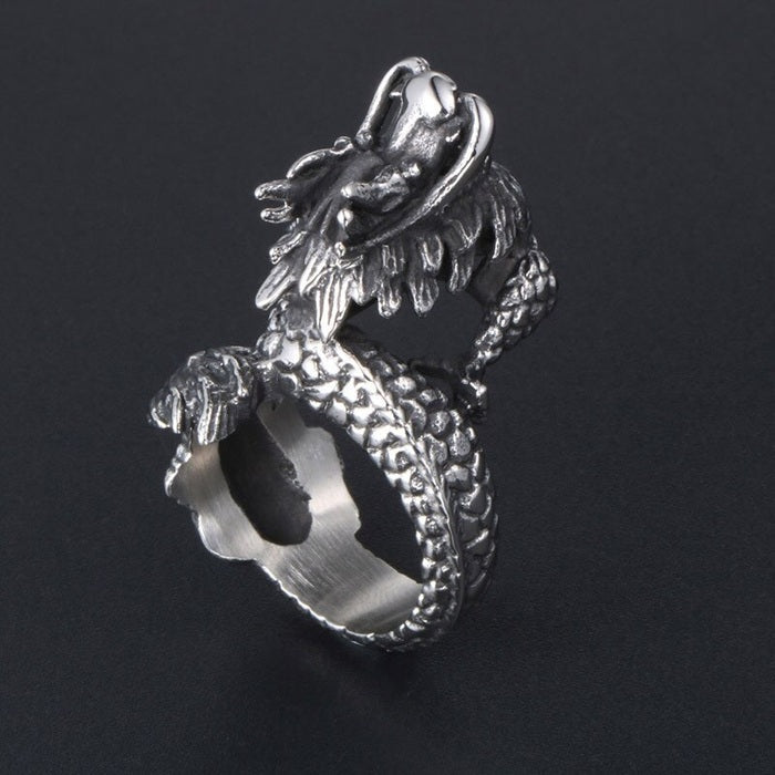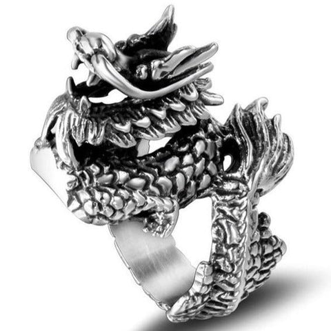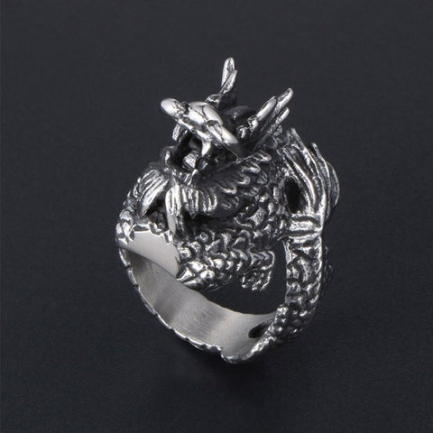 O dragão asiático espalha amor por todos os corações. Desfruta da força silenciosa deste gigante com este anel de aço.