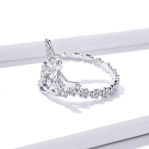 Este anel de prata polida é composto por um exército de pequenas flores e uma linda fada que o acompanhará todos os dias para o encher de maravilhas, mesmo nos momentos mais difíceis!