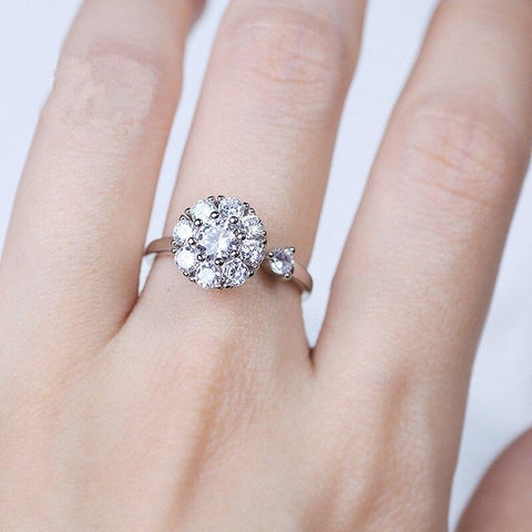 É hora de dar as boas-vindas à pura elegância na sua mão com este deslumbrante anel de flor em cristal, feito em prata de alta qualidade.