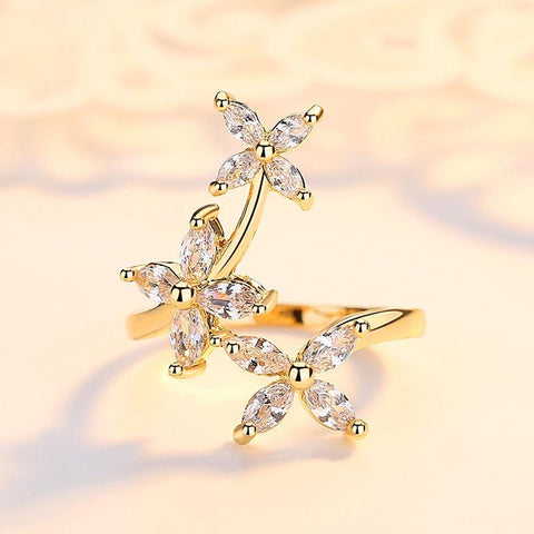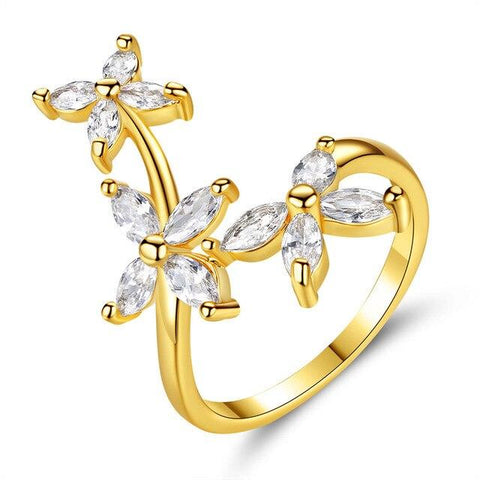 Use este deslumbrante anel floral com diamantes em dourado, feito com materiais de alta qualidade, e adote um visual florido que corresponde às suas expectativas.