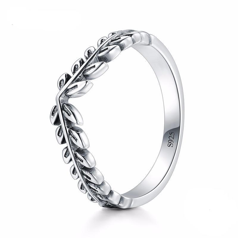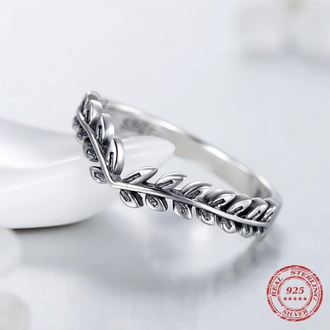 Exprima a sua feminilidade com este deslumbrante anel de folhas de louro em prata de alta qualidade. Uma joia autêntica com uma presença elegante.