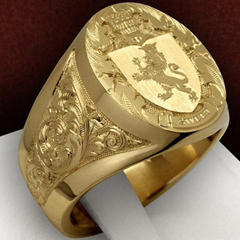 Escolhe um estilo real até à ponta dos dedos com este anel de leão que exibe um brasão ancestral.