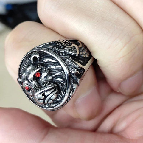 Enfrenta o olhar penetrante dos olhos vermelhos deste anel de leão. Esquece os teus críticos e segue os teus instintos felinos.