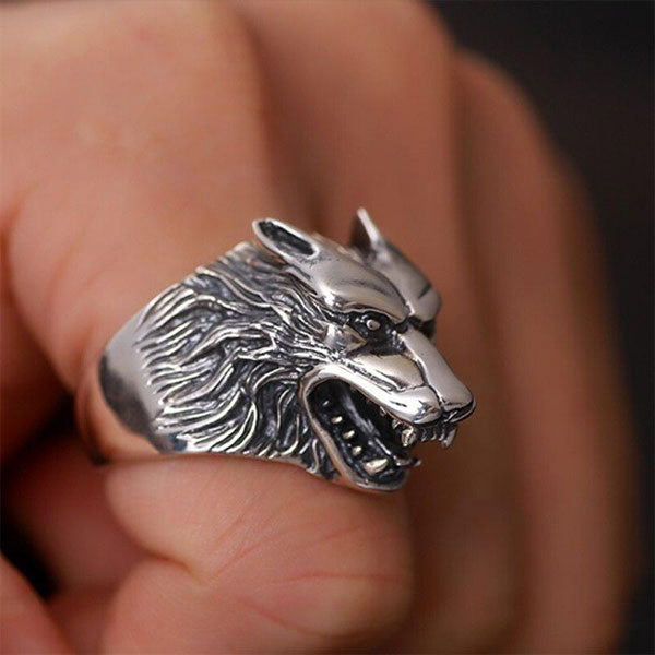 Adquire um anel de lobo para homem – anel sinete em prata maciça.