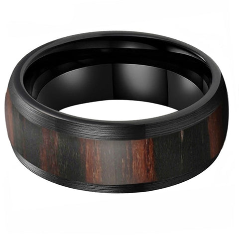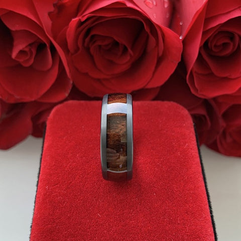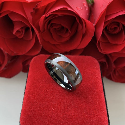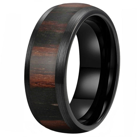 Este anel de madeira castanho é masculino e viril, mas não é apenas para homens! As mulheres também podem apreciar a beleza bruta desta joia.