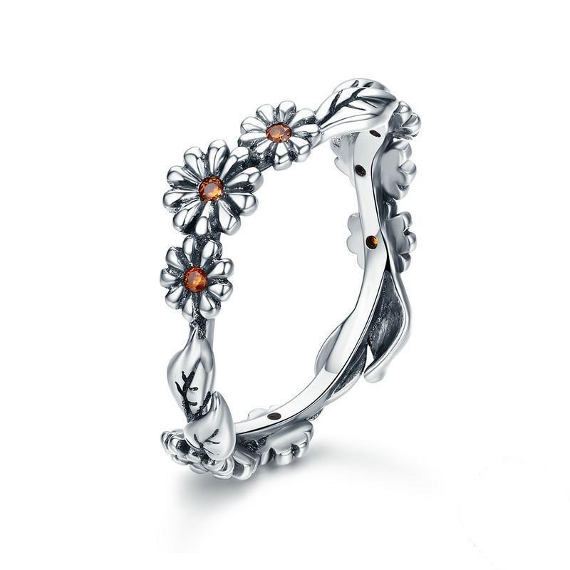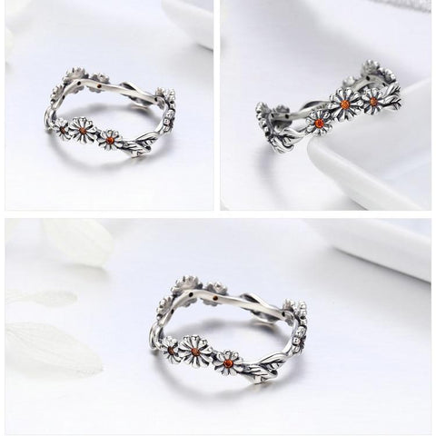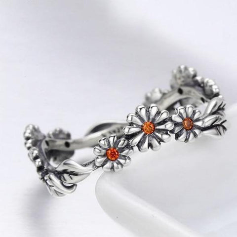 Esta joia original realça a beleza feminina. Com a sua moldura distinta adornada por lindas margaridas, este anel assenta perfeitamente na sua falange e destaca a elegância.