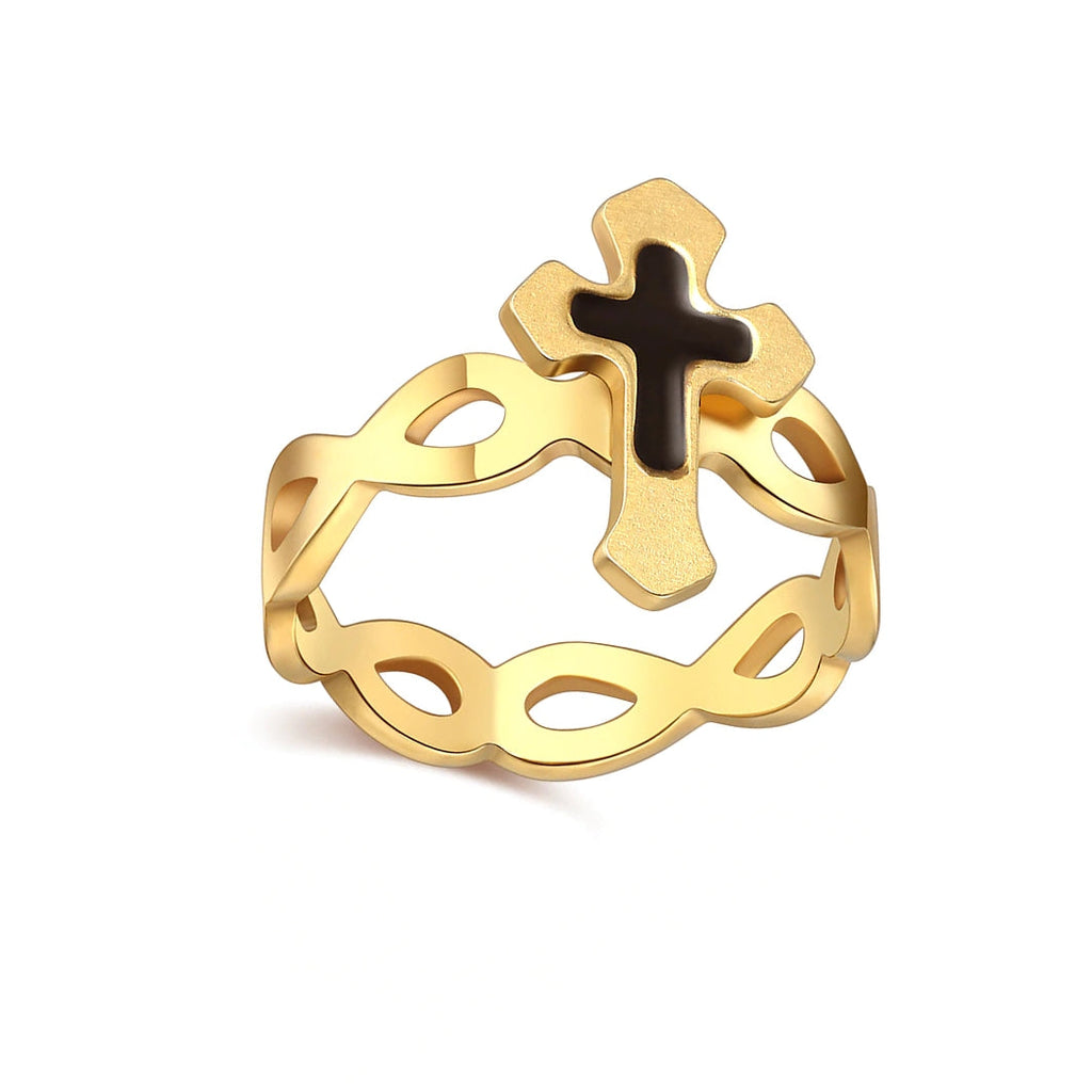 Este anel religioso extremamente requintado e delicado adorna o seu dedo e transmite a proteção e o amor de Jesus Cristo através do símbolo supremo do cristianismo: a cruz cristã.