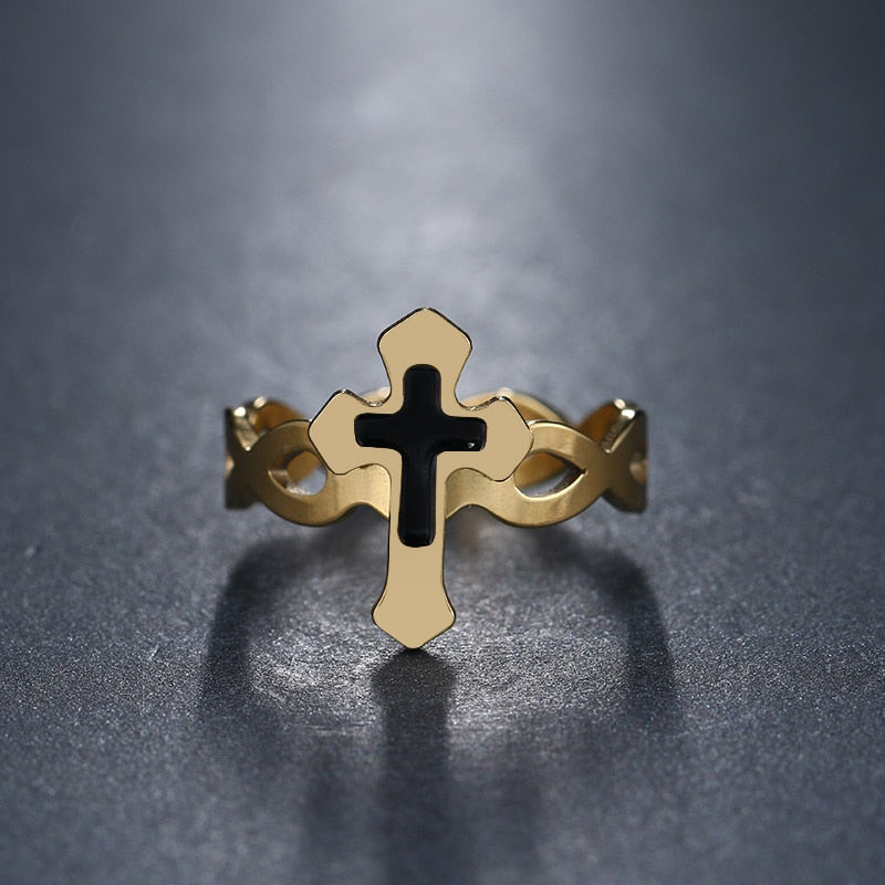 Use com orgulho todo o amor e proteção do nosso Senhor no seu dedo com este anel religioso dourado, cuidadosamente confeccionado pelos nossos artesãos e adornado com uma cruz cristã de alta qualidade.