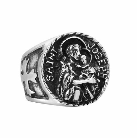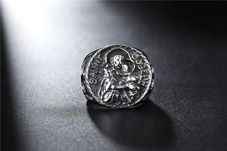 Anel religioso que representa São José, esposo de Maria e pai de Jesus