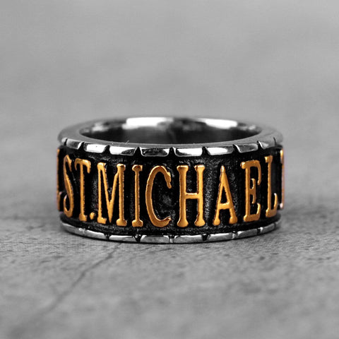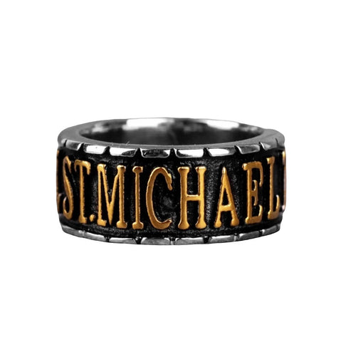 Anel de Alta Qualidade do Arcanjo São Miguel em Aço Inoxidável 316L.