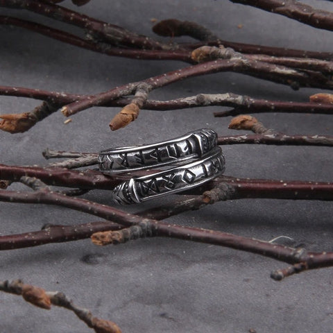 A mitologia nórdica conta que toda Midgård, o mundo dos humanos, é sustentado pela serpente gigante Jörmungandr. Este anel, coberto por runas mágicas, é uma representação simbólica do universo viking.