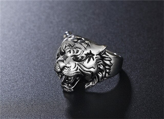 Este magnífico anel de tigre, com o seu design masculino, é a joia perfeita para os homens. O anel está repleto de masculinidade e é digno do sexo masculino, pois representa a força do maior predador terrestre do planeta.
