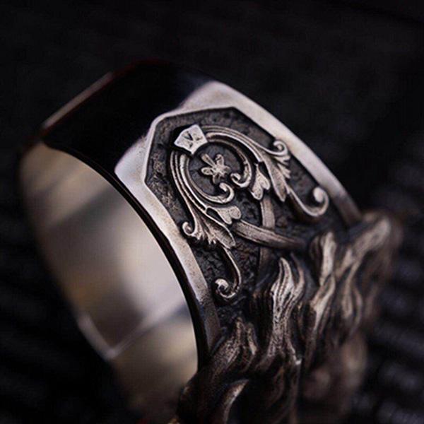 Liberta a tua ferocidade felina com este anel de leão em aço, adornado com o mais nobre dos padrões reais. Nada nem ninguém poderá destronar-te.