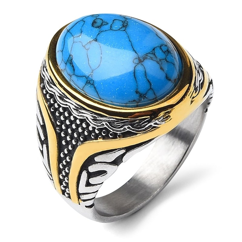 Desperta a inveja dos teus colegas com este anel misterioso, que é simultaneamente elegante e sofisticado! Esta peça requintada, moldada a partir de uma pedra de turquesa profunda, é o companheiro ideal tanto para ocasiões formais como informais.
