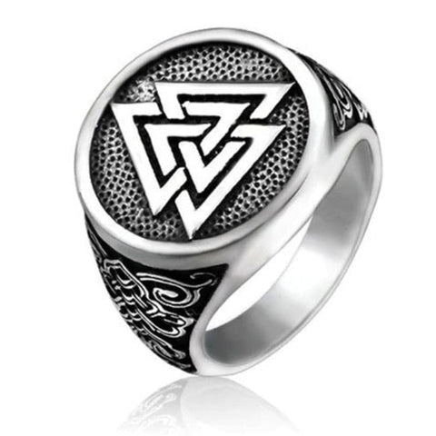 O símbolo Valknut é um antigo emblema viking composto por três triângulos entrelaçados. Este símbolo famoso foi encontrado em colunas com inscrições rúnicas que datam da Idade Média. Este anel apresenta o símbolo nórdico em duas cores — escolha entre acabamento dourado ou prateado. Além disso, o anel é decorado nas laterais com padrões entrelaçados que destacam o caráter artístico desta joia.