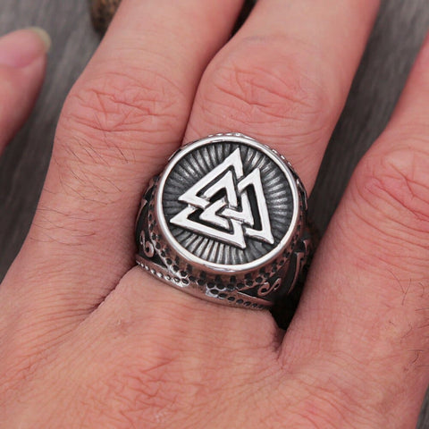 Decora os teus dedos com um verdadeiro símbolo nórdico com este anel Valknut.