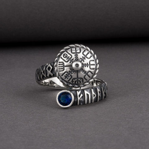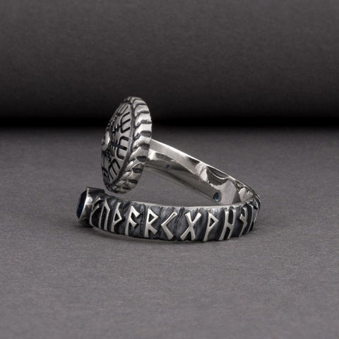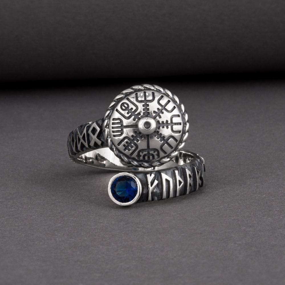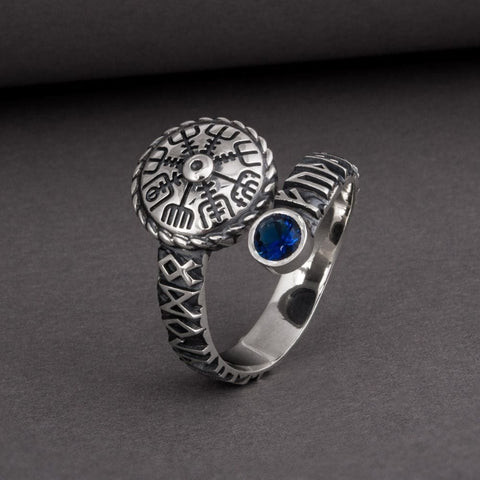 Este anel rúnico apresenta um escudo adornado com o símbolo viking Vegvisir. Tradicionalmente, este símbolo era utilizado por viajantes vikings, que viam no Vegvisir um emblema de proteção.
