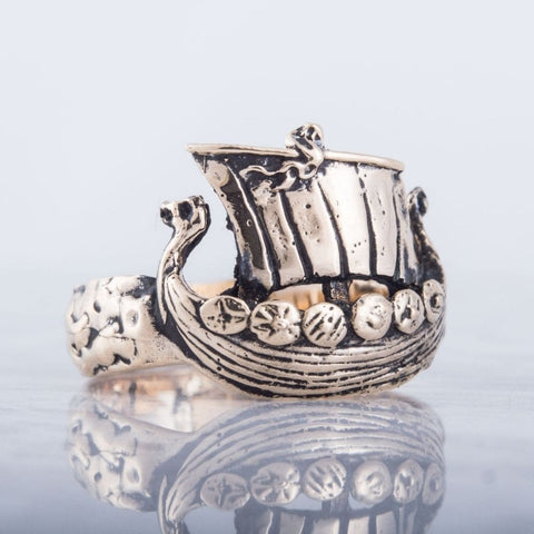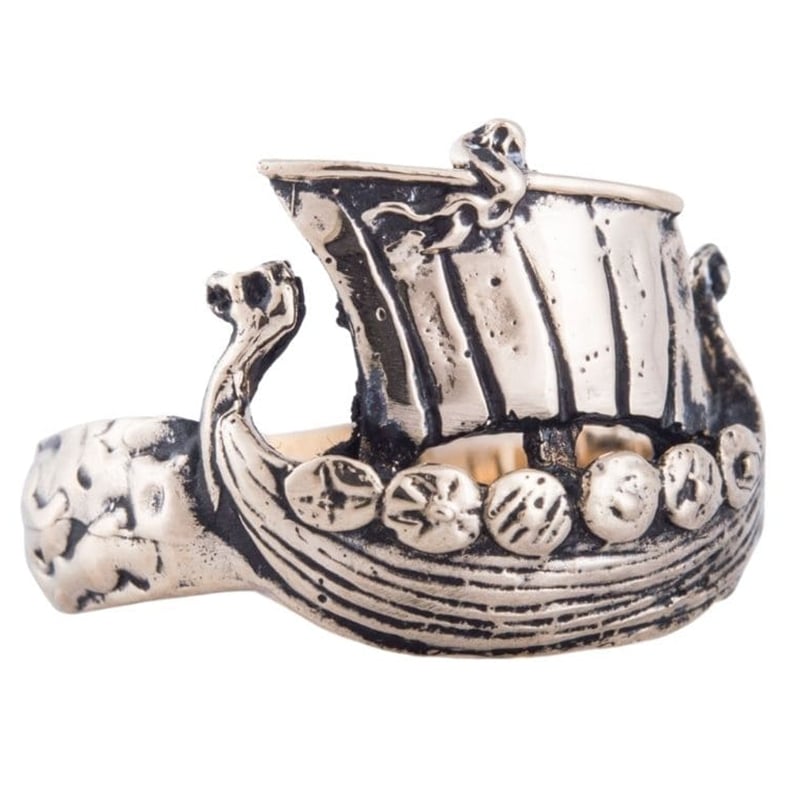 Decore o seu dedo com este magnífico anel de bronze em forma de dracar. Esta embarcação única contribuiu para as mais brilhantes conquistas e descobertas dos vikings. Graças a este navio, os escandinavos navegaram até ao Canadá 500 anos antes de Cristóvão Colombo.