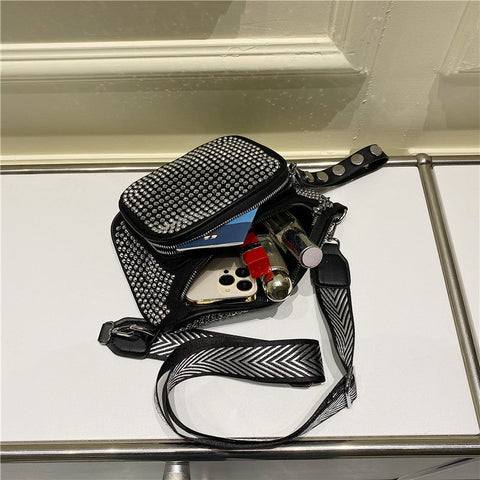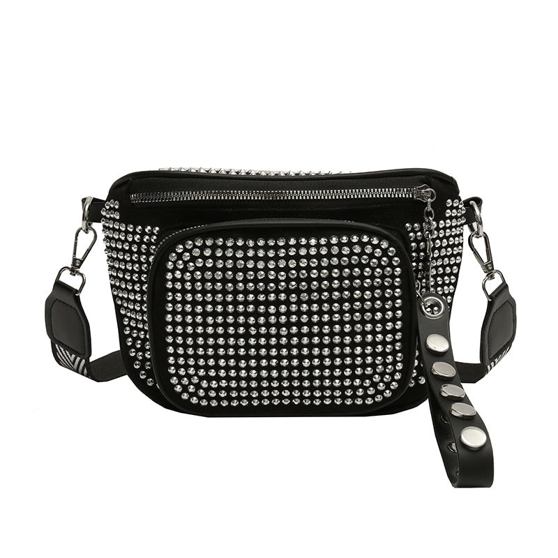 Vai adorar o estilo cintilante desta bolsa de cintura com pedras strass.