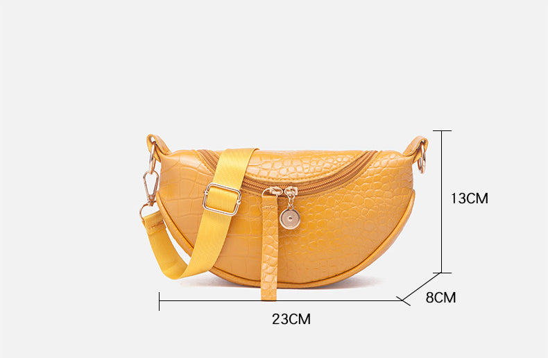 Esta bolsa de cintura em pele com efeito crocodilo é um acessório feminino e prático que acrescenta um toque de elegância ao teu estilo. Com um design sofisticado e moderno, esta bolsa de cintura feminina com efeito crocodilo é a escolha perfeita para quem procura um acessório simultaneamente encantador e na moda. Graças à alça de ombro ajustável, podes usá-la de várias formas, adicionando versatilidade ao teu visual.