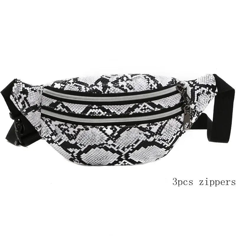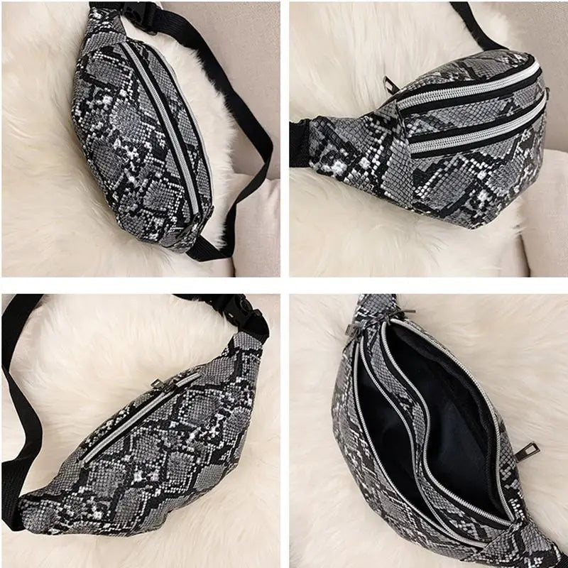 Esta pochete com efeito de pele de cobra é o acessório perfeito para a fashionista ousada. Com o seu padrão moderno inspirado na pele de cobra e características excecionais, esta pochete representa a combinação ideal de elegância exótica e funcionalidade contemporânea.