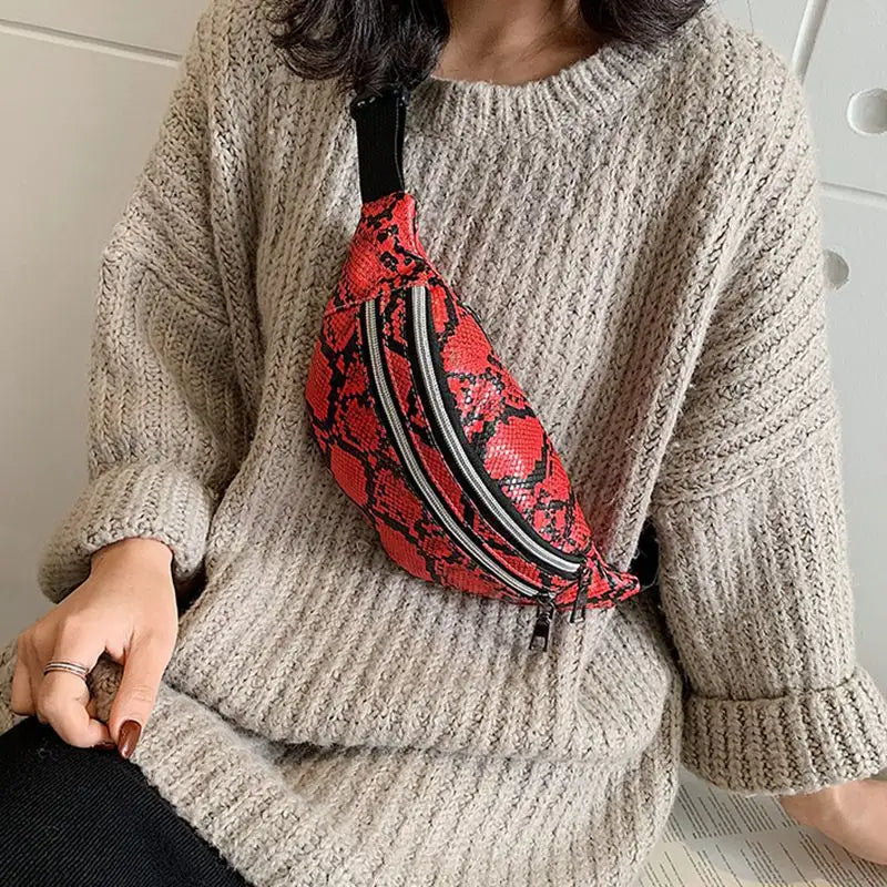 Esta pochete apresenta um design irresistível com efeito de pele de cobra!