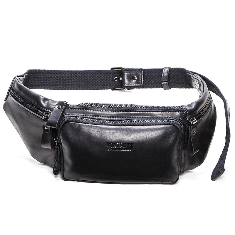 Seja elegante todos os dias com esta bolsa de cintura masculina em couro.