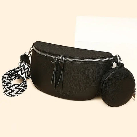 Esteja na vanguarda da moda com esta bolsa de cintura em pele para mulher.