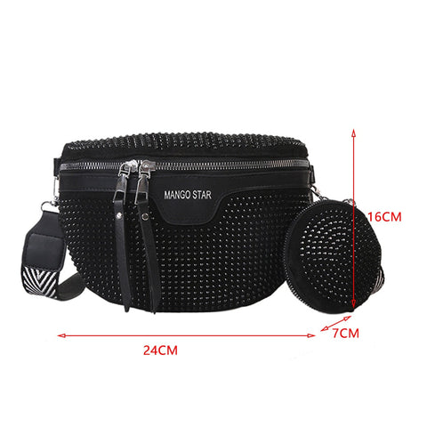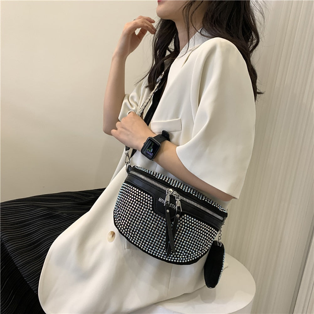 Procura um acessório que combine estilo moderno com detalhes artísticos? Então descubra esta bolsa de cintura feminina, um acessório que reflete elegância e brilho, proporcionando uma experiência cheia de estilo e tendência!