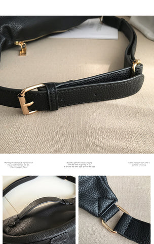 Vai adorar o espaço de armazenamento desta grande bolsa de cintura em couro para mulher.