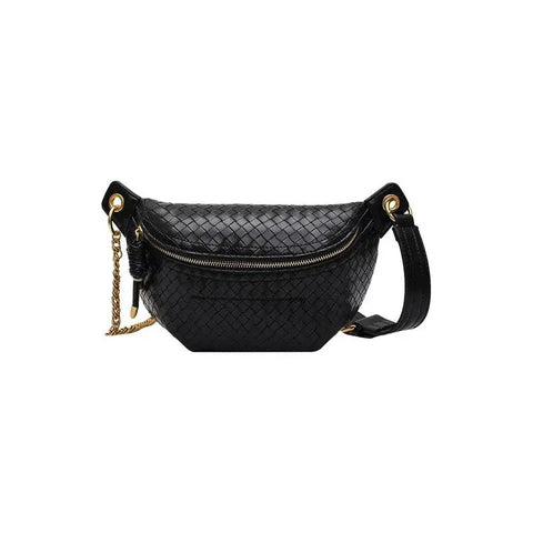 Descubra esta maravilhosa bolsa de cintura preta em pele para mulher.